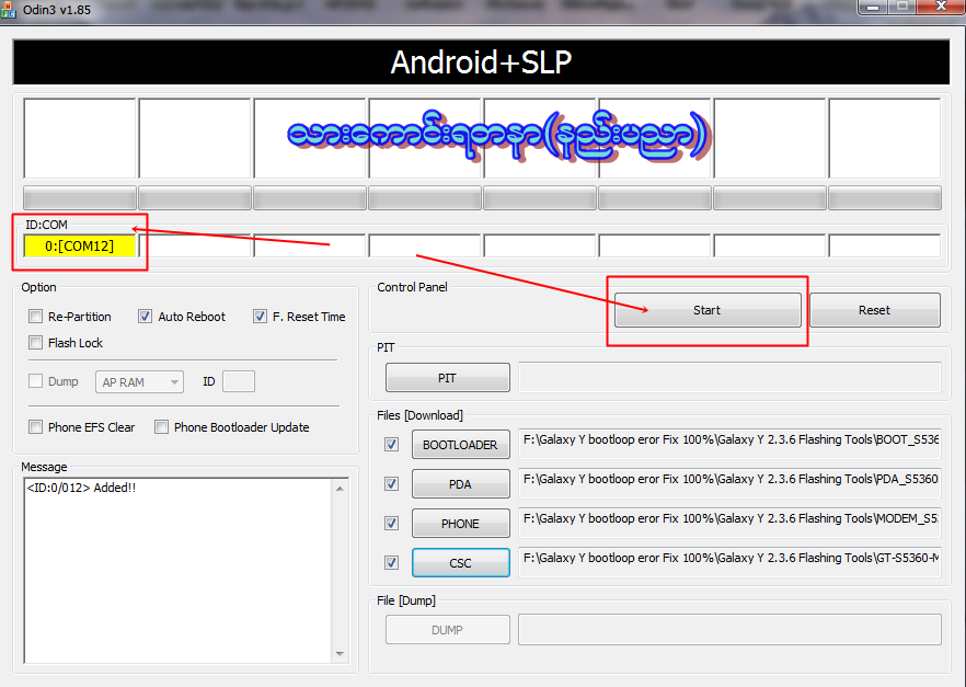 ျပီးရင္ေတာ႔ ဖုန္းကို ကြန္ပ်ဴတာန႔ဲ ခ်ိတ္ဆက္ပါမယ္ Odin က ဖုန္းကိုသိျပီဆိုရင္ ID:COM